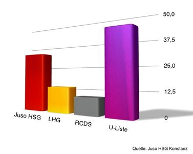 Bei einer Wahlbeteiligung von 18,38% (+10% im Vergleich zum Vorjahr) errang die Juso HSG, die erstmals mit einer eigenen Liste antrat, 32,86% der Stimmen und wird damit zweitstärkste Kraft im neuen Allgemeinen Studierendenausschuss.